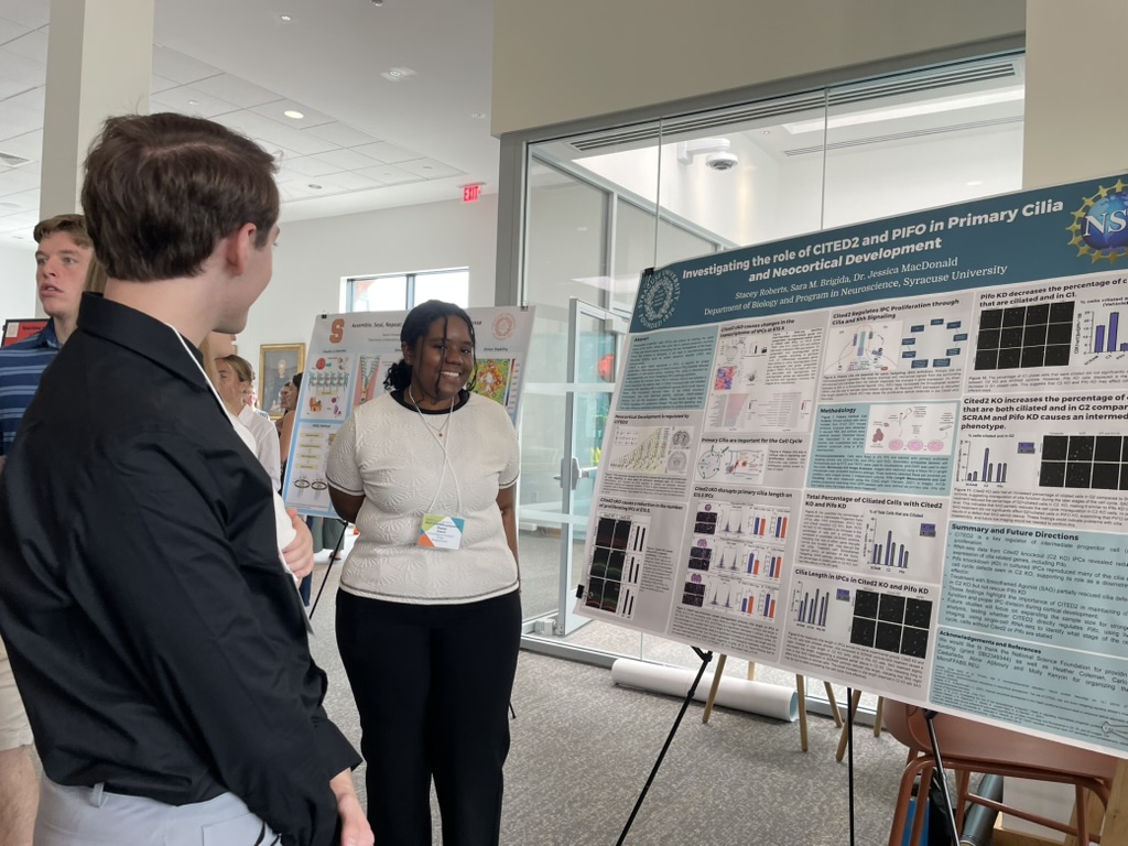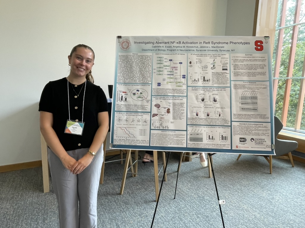 The lab had a busy and productive summer! Congrats to undergraduate researchers Gabrielle Essex and Stacey Roberts who did an excellent job presenting their summer research projects at the SU Undergraduate Research Symposium! Graduate students Nasim Khatibi and Sara Brigida followed this up presenting their research at the joint International and American Society for Neurochemistry Meeting in NYC!